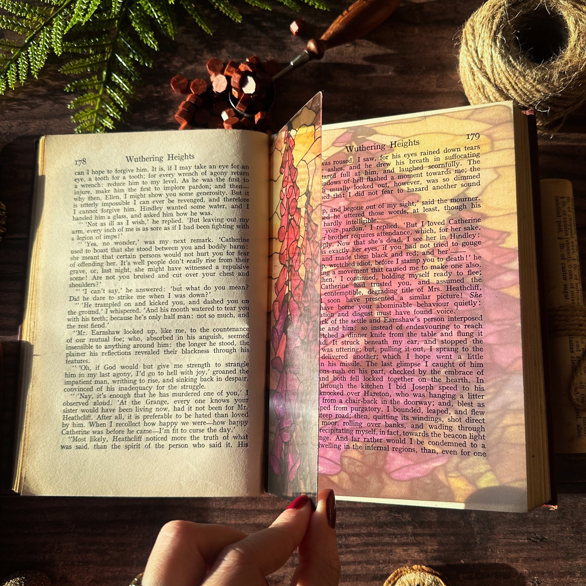 This new collection of bookmarks is designed to recreate the timeless beauty of old stained glass windows. The bookmarks are transparent, allowing the coloured light to filter through to the words on the page while reading.