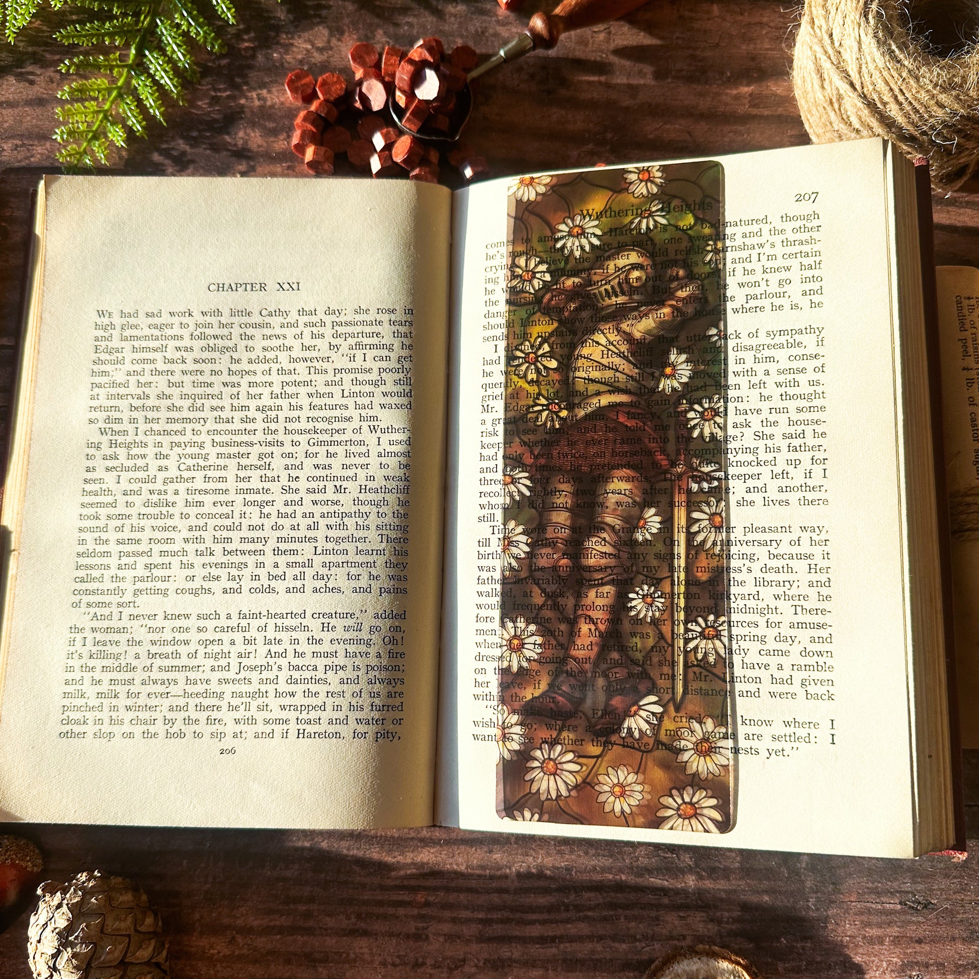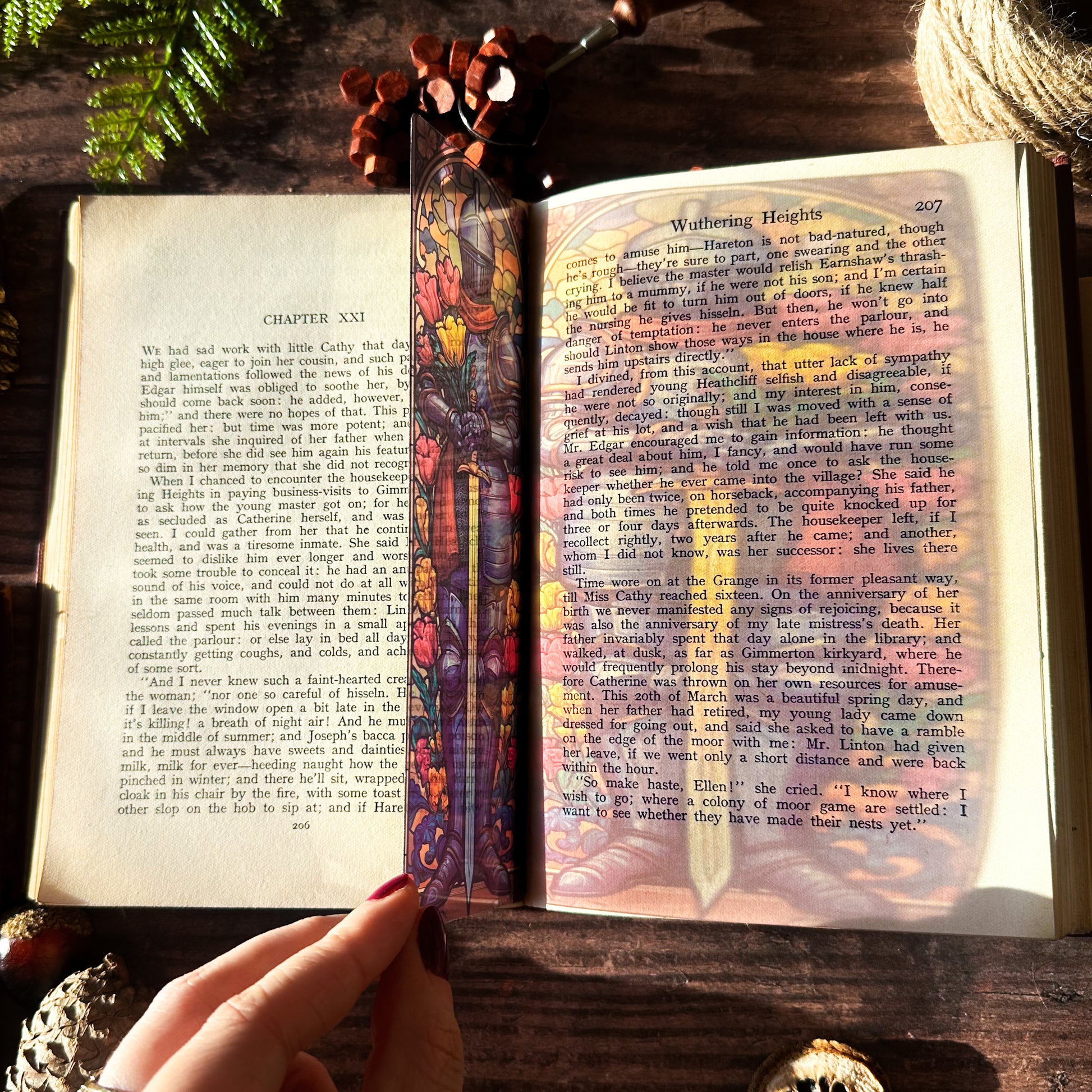 This new collection of bookmarks is designed to recreate the timeless beauty of old stained glass windows. The bookmarks are transparent, allowing the coloured light to filter through to the words on the page while reading.